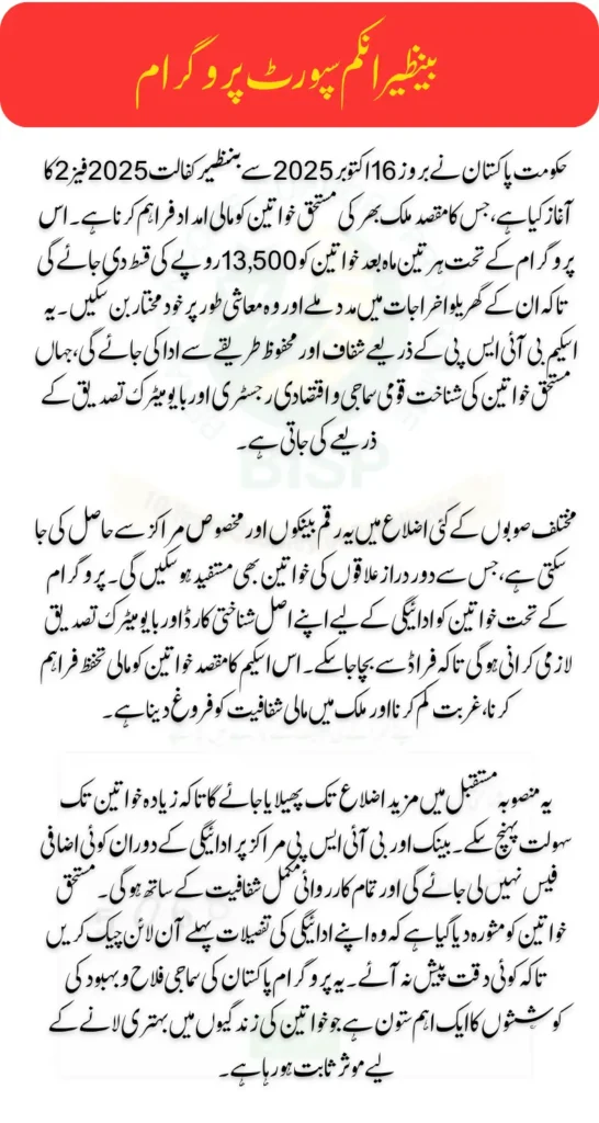 The Government of Pakistan has announced the launch of Benazir Kafalat 2025 Phase 2, starting from October 16, 2025. This phase aims to extend financial support to eligible women across various districts nationwide. Through the Benazir Income Support Programme (BISP), registered beneficiaries will receive a quarterly installment of Rs. 13,500. This initiative reflects the government’s ongoing commitment to empower low-income families and promote women’s economic independence.