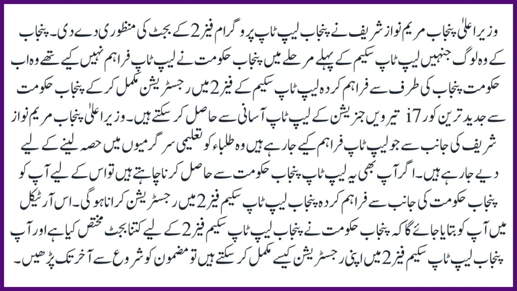 In this article, you will be told how much budget the Punjab government has allocated for the Punjab Laptop Scheme Phase 2 and how you can complete your registration in the Punjab Laptop Scheme Phase 2. So read the article from beginning to end.
