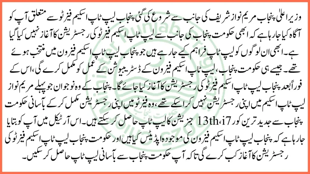 Only students selected under Phase 1 are currently receiving laptops. Once this process is completed successfully, the government will immediately launch the registration for the Punjab Laptop Scheme Phase 2.