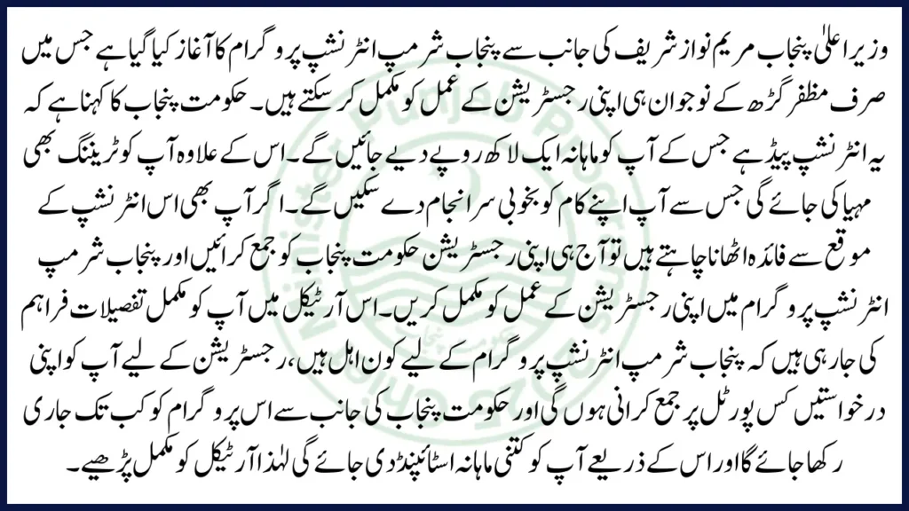 In this article, you are being provided with complete details about who is eligible for the Punjab Shrimp Internship Program, on which portal you will have to submit your registration applications, and for how long this program will be continued by the Punjab government, and how much monthly stipend will be given to you through it. So read the article completely.